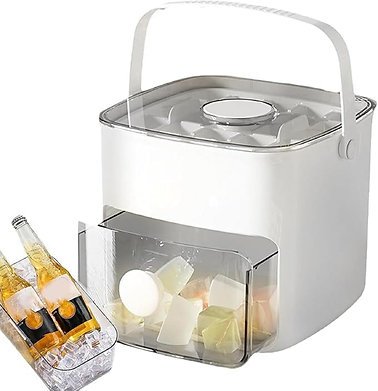 The integrated 2-tier design allows simultaneous freezing and storage within one compact space-saving unit. This large-capacity vessel holds numerous cubes to satisfy demands during parties, BBQs, or family gatherings. A transparent drawer provides immediate visibility of remaining ice levels without opening the container. The leak-proof lid prevents freezer odors from contaminating the fresh taste of your ice.