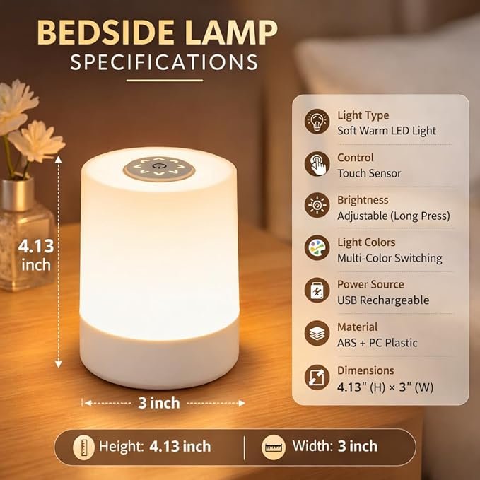 Touch Control LED Night Lamp | Dimmable Bedside Table Lamp
